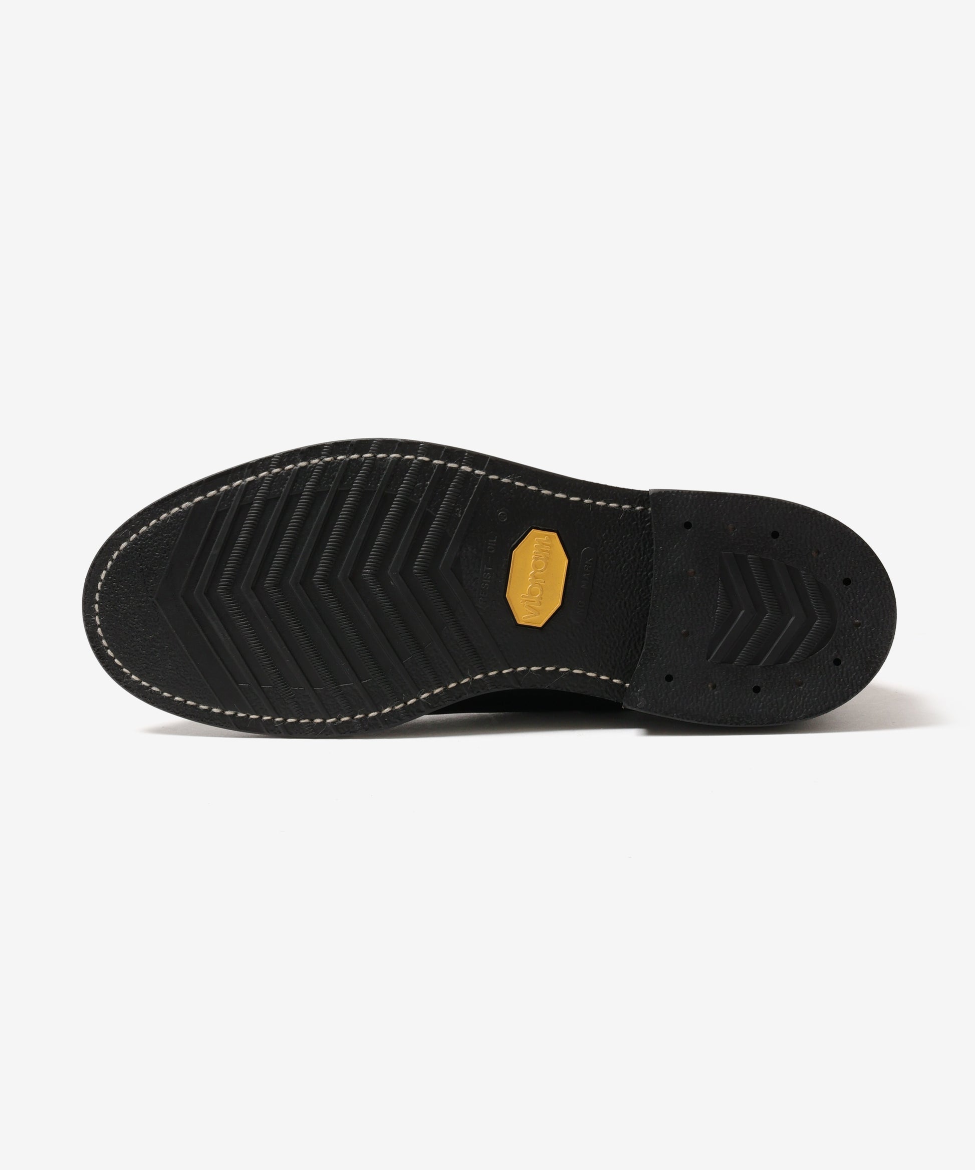 サイドゴア仕様のチェルシーブーツ。ややショート丈に設計され、足入れしやすくすっきりとした印象に仕上げています。ソールには「ストームウェルト」を搭載。これはウェルトの外側に立ち上がりを設ける仕様で、雨や埃の侵入を防ぐ実用性に加え、ブーツ全体に重厚感を与える役割もあります。ダブルウェルト仕様で堅牢性を高めつつ、クラシックなスタイルを継承。